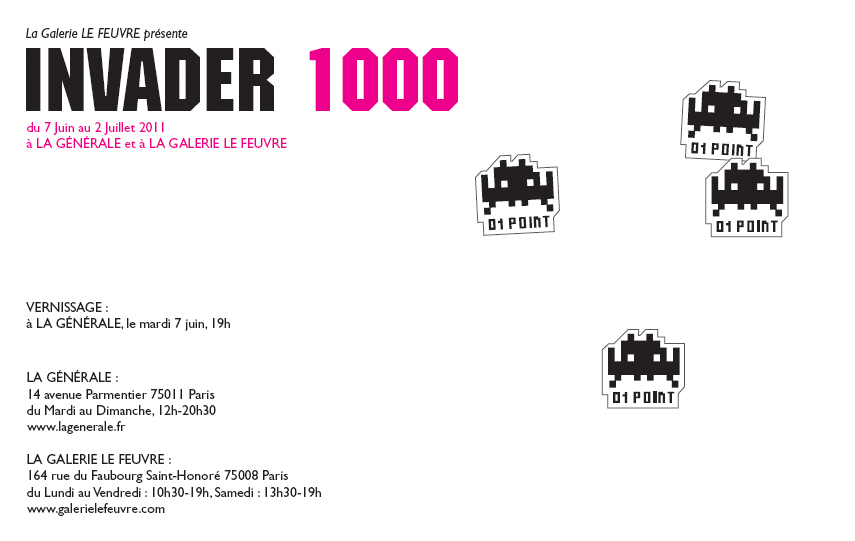 Invader 1000, an exhibition at La Galerie Le Feuvre, Paris, has been organised to signify this monumental mile stone for the artist, featuring a wide range of photography and Invader’s signature ‘Alias’* artworks. The show opened last week (June 7th) and runs until July 2nd.