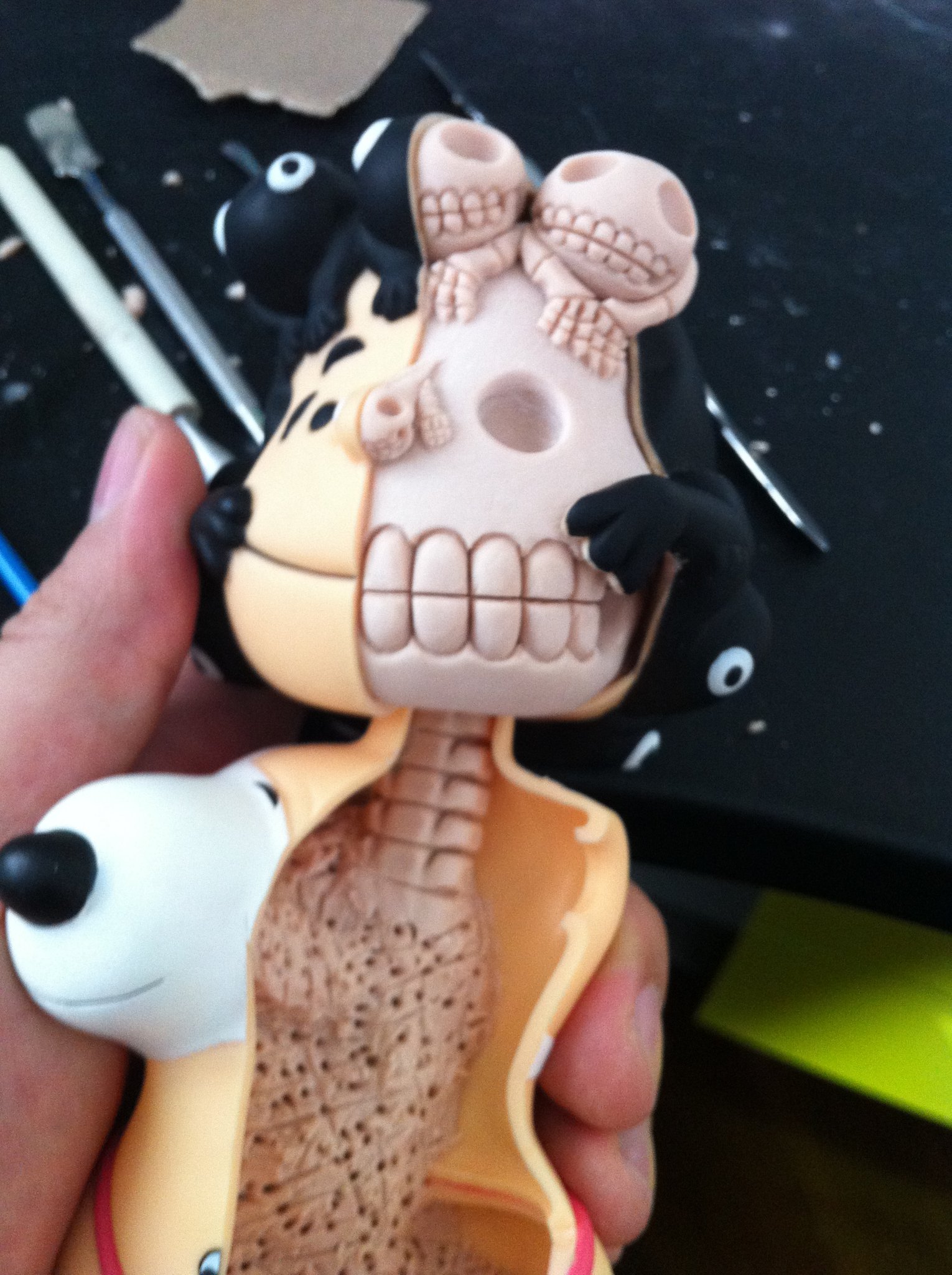 Below is a ‘work in progress’ of Jason Freeny’s Lucy custom. Featuring in an earlier Tru:Teknology Files post, Freeny is best known for his intricately sculpted ‘Dissected’ custom pieces.