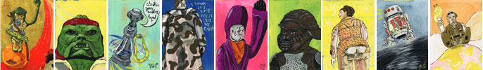 Created for the upcoming Comic-con in Dan Diego, Spoonful of Star Wars™ features interpretations of each of the original vintage Kenner Star Wars™ toys from 1977-1985 by legendary artist Bwana Spoons. The 100 paintings consist of portraits of the characters in Spoon’s unique style;