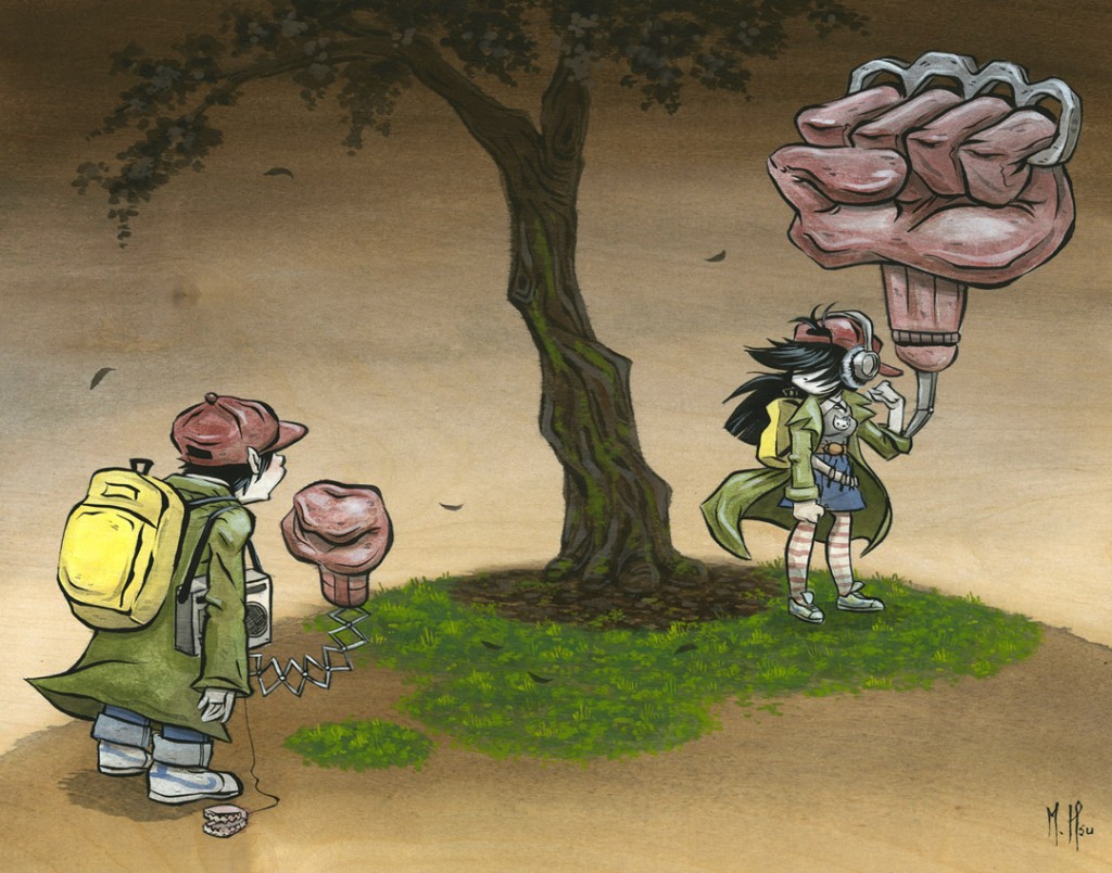“My piece “When Data Met Byte” illustrates the first encounter between Data and his soulmate, Byte. The outcome of this romantic gathering might be uncertain, but as Data will find out about life that fate strikes fast, puberty hits hard, and love hurts a lot.”