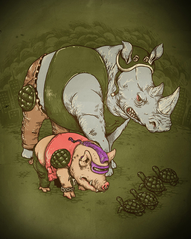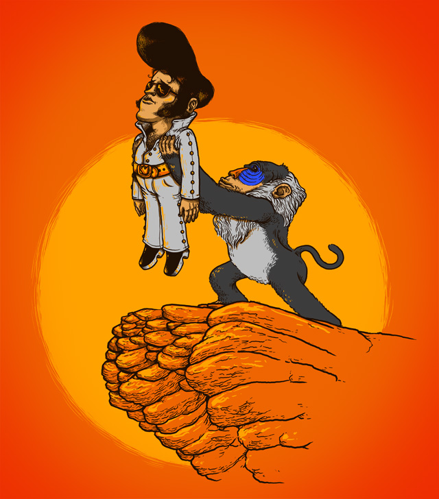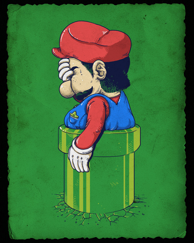 Recently garnering a huge amount of attention through t-shirt design site Threadless, Milwaukee based illustrator and designer, Alex Solis, has built up a steady following through his beautiful, intricate, and often hilarious artworks. Featuring familiar characters from the last 30 years of popular culture, Solis blends reality with the absurd; an over weight Mario, a ‘Sponge’ Bob Marley, and a ‘Donkey Kong’ gorilla enjoying lunch are all highlights of an extensive body of work. With recent projects including promo art for Disney’s Tron Legacy, Solis and his Oddworx brand look to be going from strength to strength.