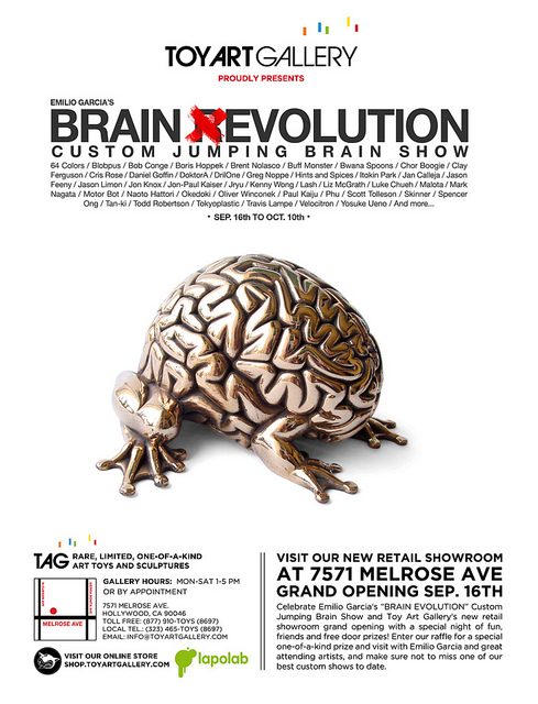 Brain Evolution: Custom Jumping Brain Show will be opening September 16th at the Toy Art Gallery, Hollywood, running until October 10th.