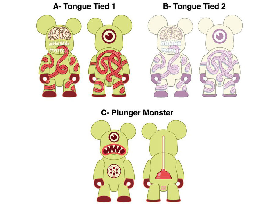 As always, Freeny has been hard at work on several toy related projects over the last few months. Photos of his latest original sculpts ‘Egg Head’ and ‘Cone Head’ and the recent reveal of his Jumping Brain entry have been massive highlights, but the reveal of the 36″ Tongue Tied Qee Bear will surely be the topic on his numerous fans’ lips at the moment. Weighing in at a staggering $2800, the production run for the piece has been limited to 36, with orders now being taken through Toy2r’s wholesaler, Apex Trading.