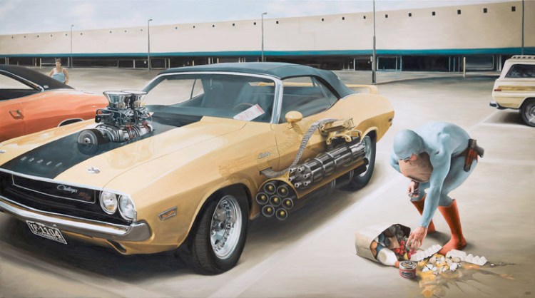 Originally hailing from Falun, Stockholm based artist Andreas Englund recently came to our attention through his latest series of paintings; featuring a fragile, ageing Punisher. Depicting the decreped superhero in a variety of seemingly mundane situations, Andreas’ new work questions the fragility of life, our attitudes towards older generations, and the vulnerability of even the most outwardly strong people.