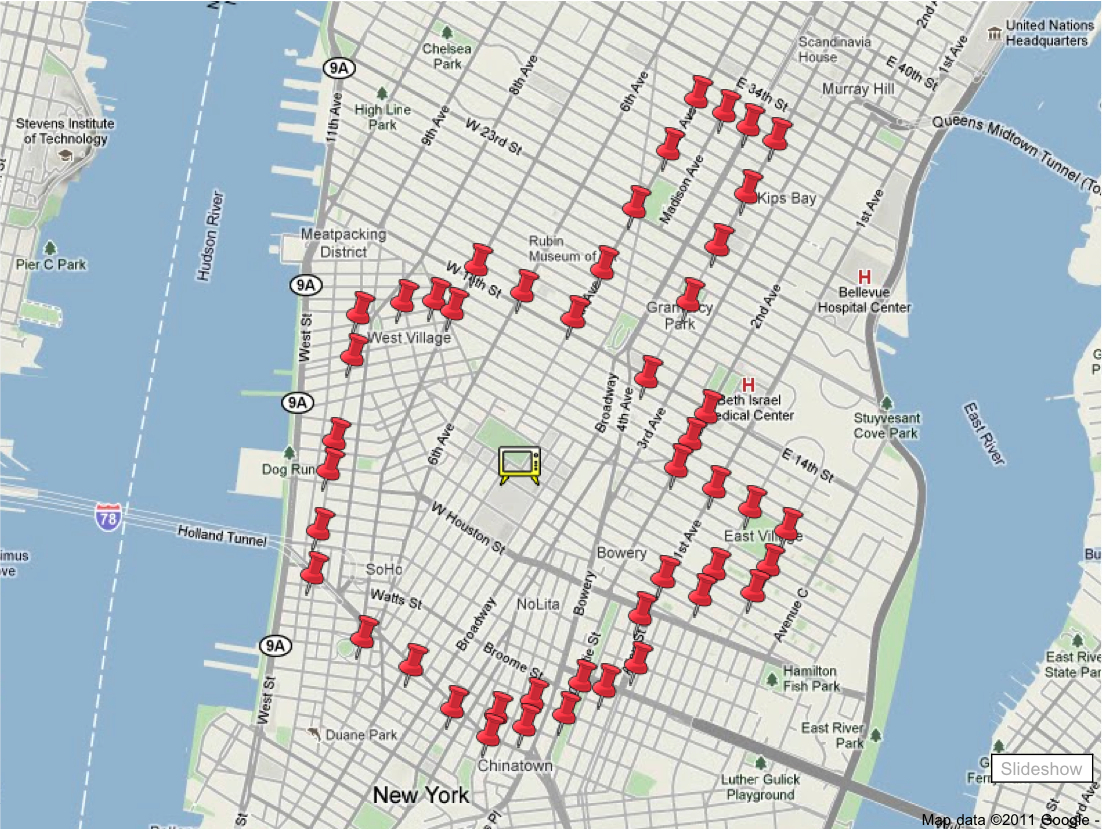 Pin drops of Trustocorp’s work across New York, one finger up to the establishment!