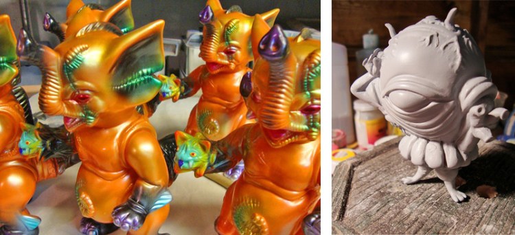 Last Monday also saw the reveal of Kaiju’s latest sculpt, the mini Andoro Seijin. The figure is still in its early stages, so no news yet as to wether it will eventually materialise in vinyl form- here’s hoping so, Kaiju’s clever design reveals a different monster face when viewed from different angles!