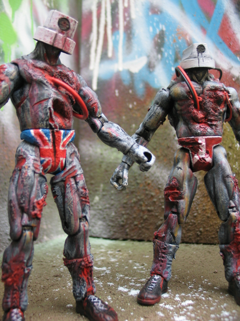 Just finished are my latest creations, the sort of thing I wish I had when I was a kid. I made these by adapting wrestling figures into these one of a kind graff models..I acquired the figures a while ago after finding them in a skip, and held onto them knowing I’d try and make them into something.. I finally got round to it and made them both at the same time…Introducing the DOMINANT SPECIES…