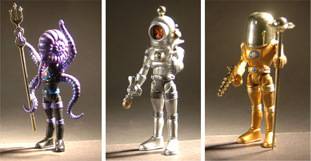 Action figure warlords, the Four Horsemen, have just revealed the final addition to the Birkrant Edition of their OSM Cosmic Creators Series in the form of Blazing Inferno. Re-imagined by the original Outer Space Men, Mel Birkrant, Blazing Inferno will be available to purchase alongside Deep Blue Astro-Nautilus, Metalmorpho and Goldiac (pictured below) on February 10th at the Four Horsemen’s Toypocalypse 2: Futuretro gallery show at TT Underground gallery (beneath Toy Tokyo) in NYC.