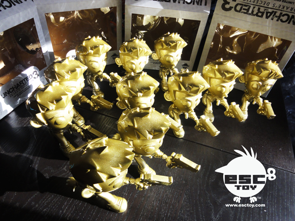 Just revealed by the guys over at ESCToy, the latest incarnation of their Unchartered Drake figure is set to drop next week on the ESCToy store here. Coming in a super limited custom gold paint job, the 7.5″ tall vinyl figure’s price point and edition size are still to be confirmed. Keep an eye on the ESCToy twitter feed and store for more information in the coming days.