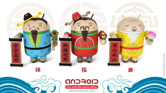 Back after the success of last year’s God of Wealth Android mini figure, DYZ Plastic has just revealed their latest Chinese New Year edition Androids in the form of Fortune (祿), Blessing (福) and Longevity (壽). Primarily intended for the Asian market, the 3 pack will be available in limited quantities at the following times/places-