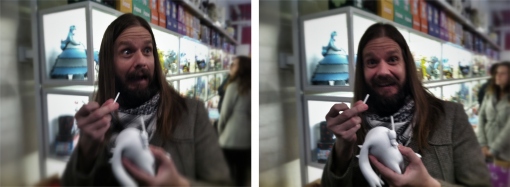 As you can see from the rather blurry photos (stupid iPhone camera…), Project X had a little trouble in transit, but Rich was still kind enough to let us in on a few details on the upcoming release. Standing at around 5″ tall, the beautifully tactile figure is set to come with 3 points of articulation (arms and neck) and a refined head sculpt (Rich hinted that the creature will come with a pointier chin).