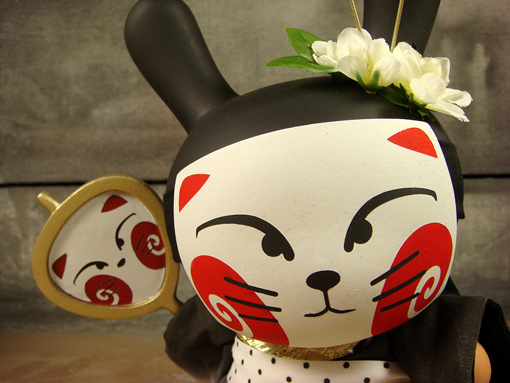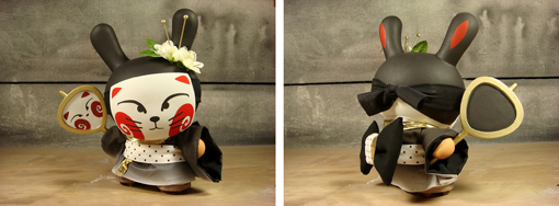 The eternally busy Huck Gee has just put the finishing touches to yet another custom project, this time in the form of the 8″ Kitsune Dunny. Limited to a run of ten, each figure has been signed, numbered and comes with all shown accessories. Priced at $750 each, anyone interested should e-mail Huck directly at sales@huckgee.com to arrange payment and shipping- the figures will be distributed on a first come, first serve basis, so be sure to get in touch today!