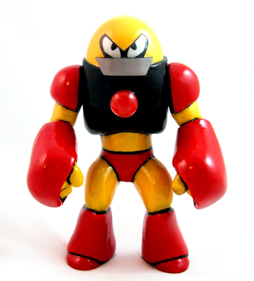 I was recently invited to participate in a group art show at the OhNo!Doom Gallery here in Chicago. The name of the show is “Super Button Mashers” and the theme is classic video games. Naturally, I chose to make a one of a kind Galaxxor based upon Gutsman, a character from the Mega Man series of games. The aesthetic that has been built around that property is absolutely mind blowing and it continues to inspire me to this day. -Ben Spencer
