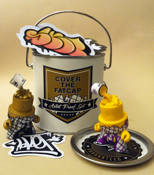 One of the highlights of the recently released Fatcap Series 3, Sket-One’s ‘Cover The Cap’ Dunnys are now available to purchase as artist proofs exclusively through his store. Priced at $120, each set includes the original yellow/purple design, the case exclusive black/gold colourway, plus Sket stickers, all packaged in a lovingly crafted paint pot style tin. These are shifting lightning quick (there was only a few left at the time of writing), so make sure you head over to the store quick to grab yours…