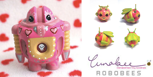 Anyone subscribed to Lunabee’s newsletter would have also been privy to another awesome piece of Sprog related news this week- the reveal of the artist’s latest one-off Sprog custom! Created to coincide with the launch of the Lunabee x Cris Rose Robobees series 3 this week, the custom Valentine Sprog is set to be given away as a prize in Lunabee’s latest giveaway- all you have to do to be in with a chance is reply to the newsletter (subscribe now!) with the specific subject header she mentions in it. The winner will be picked at random on February 14th, with the winner notified by e-mail and announced on Lunabee’s twitter feed.
