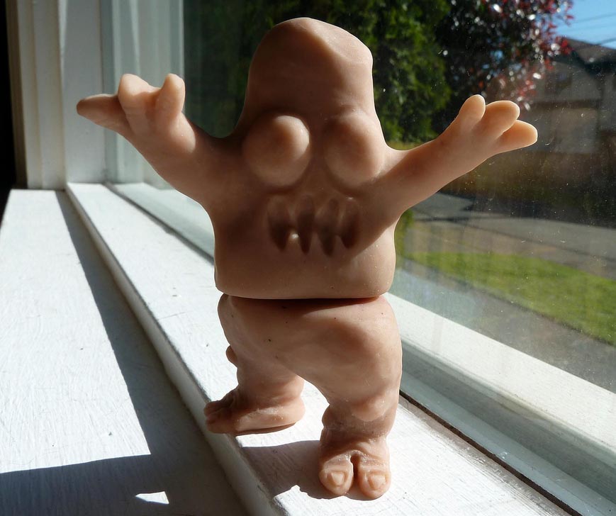 Ummm… cupcakes?…The Ugly Unicorn character started as a doodle, and then he fell into the role as the Cupcake Kaiju’s arch nemesis (the UU being obsessed with Cupcakes, and the Giant Cupcake Kaiju being the holy grail to satiate his hunger – of course.). No! I’m not obsessed with cupcakes! Anyway, I developed the Ugly Unicorn further in paintings and screen prints, and then wanted to do a toy. That was around the time when my wife and I were planning our move to Japan, and that gave me a little push to go for vinyl (rather than resin). So, I set to sculpting him, and that’s that.
