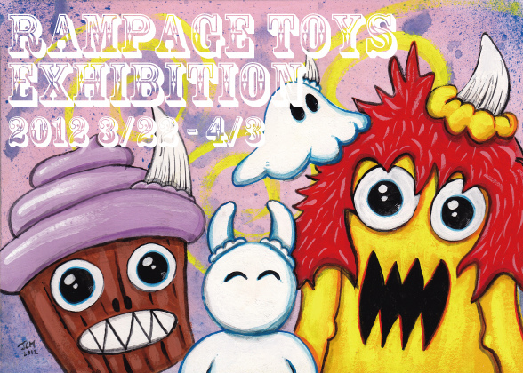 -RAMPAGE TOYS exhibition at Studio Uamou in Akihabara (Tokyo!). This will open on March 22d. Expect 30 (or maybe 50… details are getting sorted) custom Uamous, a run of 10 Exclusive Ugly Unicorns, a new resin release, a mini-collaboration with Resin Artist Peter Kato, paintings, prints, buttons – lots of stuff. I’ll start sharing pics soon! The event flyer can be viewed here: http://www.flickr.com/photos/27483582@N00/6916135273/in/photostream