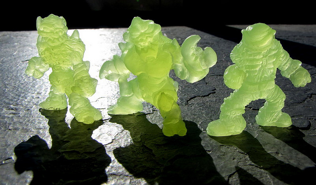 Whilst the initial violet glow, green glow (pictured), and black NUKED! sets have long since disappeared, Steve is offering up a whole host of seconds and bad casts for just $2 each! Perfect for customisers, the mini-figures are available through the Papagrim Big Cartel now…