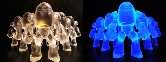The recent Galaxxor 009, as with 005 and 006, comes in a unique bb filled clear resin that has made him one of the most sought after figures in the scene. How did the idea come about?