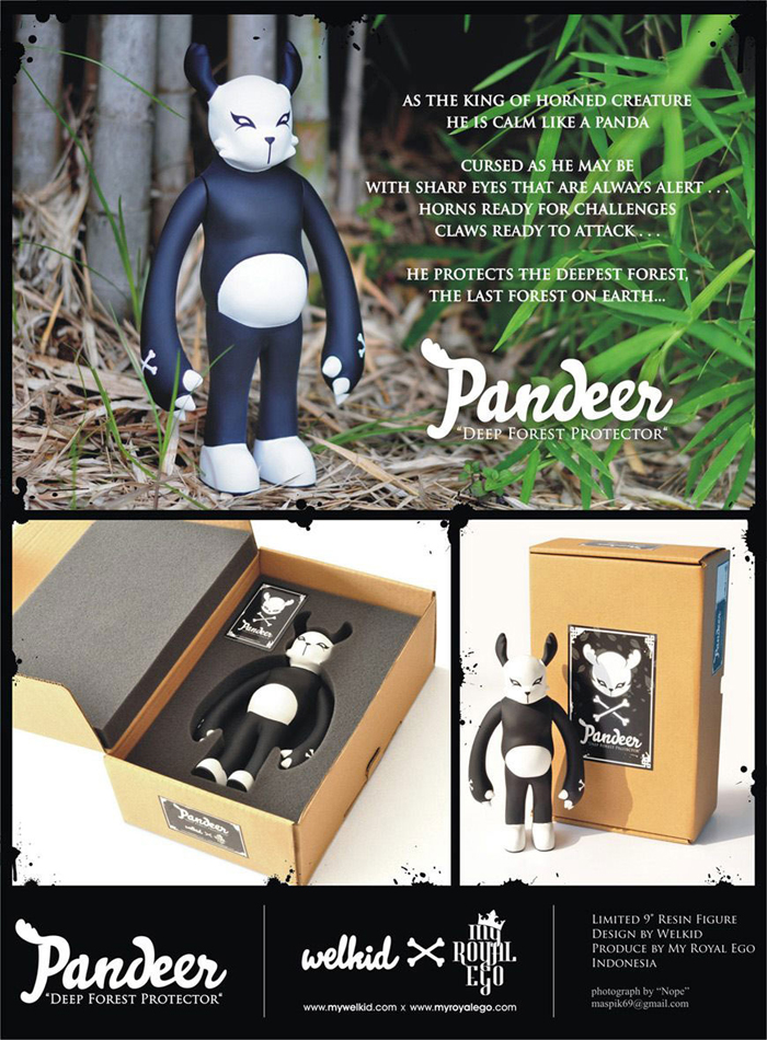Welkid has just revealed his latest project with ‘Lord on Board’ creator, My Royal Ego, the Pandeer resin figure. As the name would suggest, the 9″ tall beast takes its aesthetic from both the panda and deer- resulting in a beautiful character whose balance of curves and blocked shapes is reminiscent of a humanoid take on Touma. Priced at $160 plus shipping, the Pandeer is limited to just 20 pieces, so be sure to track My Royal Ego down here to secure yours…