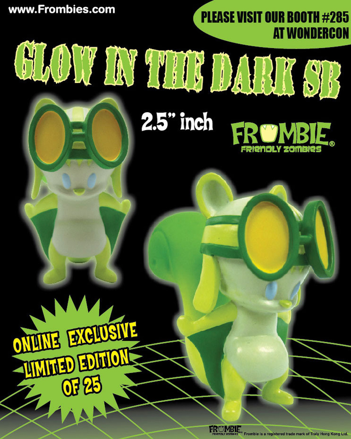As mentioned in our GID Maria post yesterday, the Frombies will be out in force for this year’s Wondercon (booth #285), with the first batch of planned releases announced today. First up, the friendly zombies will be dropping an exclusive ‘Glow in the Dark’ edition of flying squirrel SB, who will be available to order from the Frombies store on the opening day of Wondercon (March 16th) at 11am EST. Limited to just 25 pieces, the figures are set to ship the week after Wondercon.