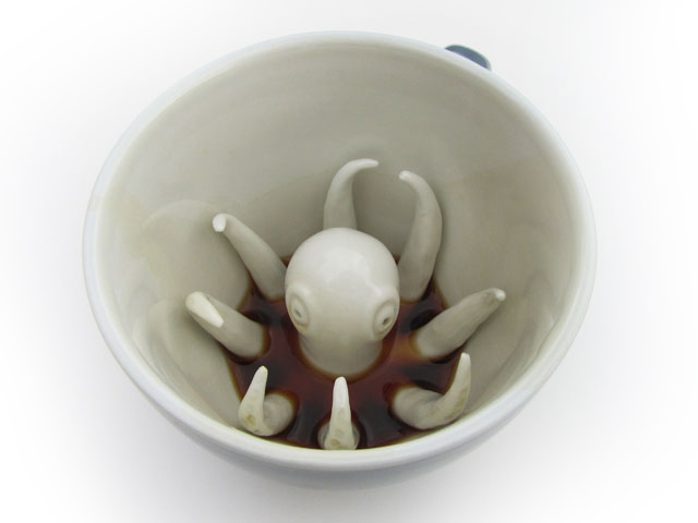 “Creeping along the bottom of your cup, the Octopus is up to noooo good. He’ll be a little startled if you catch him, and who knows what he’s doing if you don’t.”
