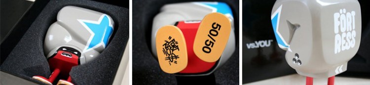 Following the recent release of the ‘Charged’ polygon variant of Vs. You‘s trademark boxing glove figure, the team have just revealed their first collaboration with Flying Fortress– the Trooper. Based on the EVO design of Vs. You’s past series, the figure has gained in size, been cleaned up, and painted in the standard Teddy Troop colours of red, blue, and grey. 100% hand made, the resin figures come signed and foam packed for just $50 plus shipping. Limited to just 50 pieces (30 in Europe, 20 State-side), the Troopers are available to purchase exclusively through the Vs. You store now…