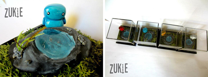 Next we have the Summer Time! Zukies, which have been limited to 4 one-off designs. Coming in red, turquoise, yellow and white, these sun loving creatures have been crafted with a mixture of sculpey, clear resin, and hobby grass. 100% hand sculpt and painted, the Summer Time! Zukies will be available alongside the Spring Blossoms for just $70 a piece…