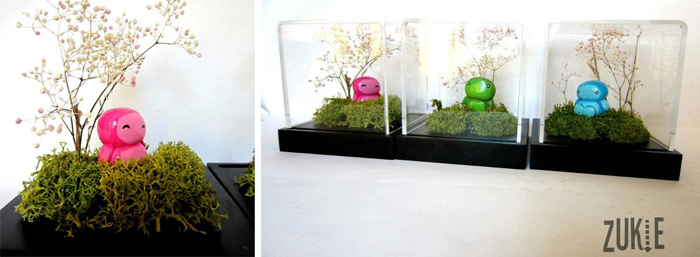 First up, Spring Blossoms have been limited to an edition of just 3, available in either pink, light green and light blue colourways. Created using a mixture of sculpey, hobby grass and scaled blossoming trees, each Zukie diorama comes housed in the now standard 3″x3″x3″ plexi-glass box for protection. Available for $60 each plus shipping, the Spring Blossoms will be hitting the Zukie store this Friday (March 9th).