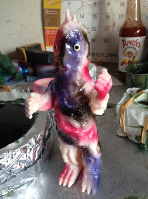 New from Amapro Vinyl comes the US exclusive release of Franjyu Dodoro. Available to pre-order from Lulubell Toys today (March 15th) at 5pm PST, this super-freaky slice of neo-kaiju has been cast in flesh coloured vinyl with pink, purple & black hand sprayed detailing. Coming in a strictly limited edition, the 5″ tall figures have been priced at just $25 each plus shipping. Anyone interested should hit up the direct link here…