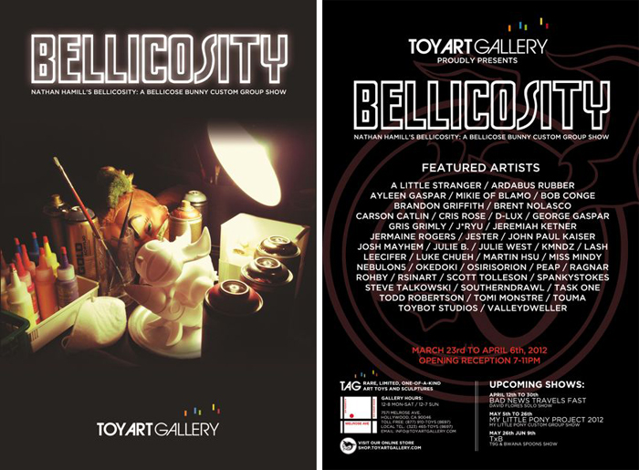 Featuring a staggering list of the industry’s finest including A Little stranger, Cris Rose, J*Ryu, Jon Paul Kaiser, Julie West, Luke Chueh, Touma and Valley Dweller, Nathan Hamill’s Bellicosity: A Bellicose Bunny Custom Show will be running at the Toy Art Gallery from March 23rd to April 6th. Stay tuned next week for an in-depth reveal of what is gearing up to be the biggest custom exhibition this year…