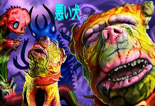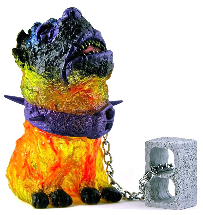 The elusive Kaiju Coup is proud to present the latest addition in their creeped-out neo-kaiju series, Warui Inu ‘Goth’ edition. Manufactured by Medicom Toys in Japan, the 6.5″ tall vinyl figure has been cast in yellow, green and orange marbled vinyl, with metalic purple and black sprays. Coming with the obligatory concrete block and chain, the gruesome mutt has been limited to 6 pieces worldwide. As with past releases, anyone interested in snapping up Warui Inu ‘Goth’ will need to register with Kaiju Coup (e-mail details to- kaijucoup@gmail.com) before March 24th to be entered into the lottery. Anyone lucky enough to win will be offered the bagged and headed figure for just $220 plus shipping…