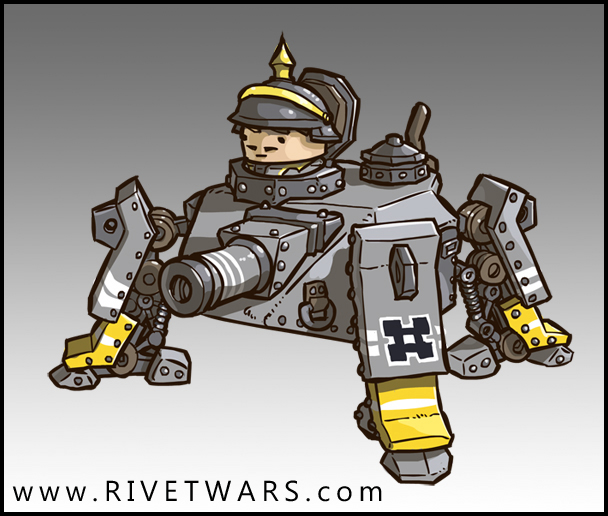 I’d also like the reveal the storyline I’ve been working on and some of the characters. I think it’s a pretty cool story, but I’m not a writer, so hopefully it’s decent enough. And then there’s all the little things like getting the logos, nation names, etc all figured out. But my greatest concern is people losing interest. That I’ll be too slow in bringing new things to the table. It’s that concern that keeps me drawing away while I’m watching TV and coloring stuff at night before I go to sleep. I feel very lucky that so many people are already interested in Rivet Wars and I want to make sure that I keep giving them enough exciting stuff to make it worth their interest…