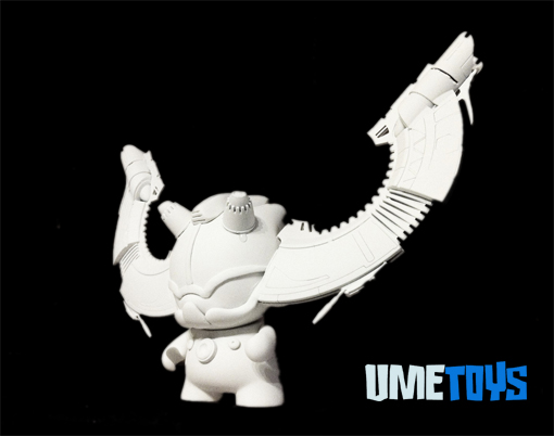 We don’t usually feature work in progress shots of custom work here at MAN-E-TOYS, but when we saw the recent pics posted by UME Toys, we simply couldn’t resist! Choosing to work with the FOOMI platform, Rich over at UME has gone to town with this Gundam/robo inspired figure, featuring a meticulously kit-bashed/modelled mask, exhaust, and beautifully over-the-top head piece. No news as to whether this is for a private commission, upcoming show, or just for fun, but stay tuned for further reveals as Rich adds yet more detail, and of course, paint to the wondrous creation in the near future…