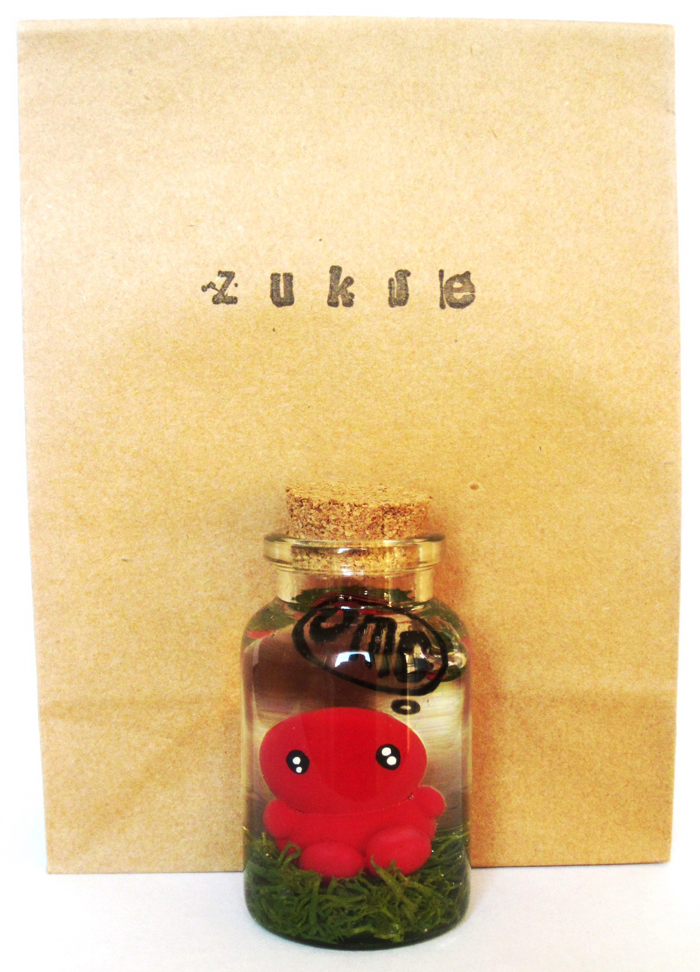 With the original ‘Zukie in a Bottle’ selling out in a matter of hours, Alison Perez (aka Miss Zukie) has bowed to the pressure from fans, with a second round set to drop later this week. Featuring a new and improved design, Alison has scrapped the original ‘thought scrolls’ in favour of painting the Zukie’s musings directly onto the inside of the glass. Created using a mixture of sculpey, hobby grass, clear resin, ink and a glass corked bottle, the latest (and sadly final) run of ‘Zukie in a Bottle’ has been limited to just 13 pieces. Priced at $35 each plus shipping, expect to see these hit the Zukie store this Friday, April 6th at Noon EST…