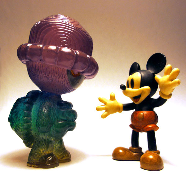 Never one to rest on his laurels, Erick Scarecrow of ESC Toy is back with yet another limited resin release, Turtum Micci Series 3. Swiftly following February’s ‘Slate’ edition, Series 3 appears to be cast in clear resin with a multi-coloured (Monster Kolor?) paint job. News on pricing and availability are still thin on the ground, so be sure to keep checking the ESC Toy blog for further updates…