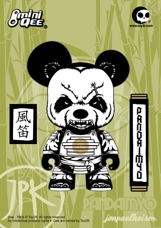 Following the success of a number of 5″ Mini Qees over the past year including the stunning Captain Sturnbrau, Jon Paul Kaiser and Toy2R have once again teamed up for the release of Pandaimyo! Originally featuring as a one-off custom Dunny in April of last year, the samurai panda warrior appears to be making a smooth transition to the familiar 5″ format, if anything appearing more detailed and better suited to the new platform. No solid news on pricing or availability, but our guess is that these guys will be making an appearance sometime this summer for around $28 each…