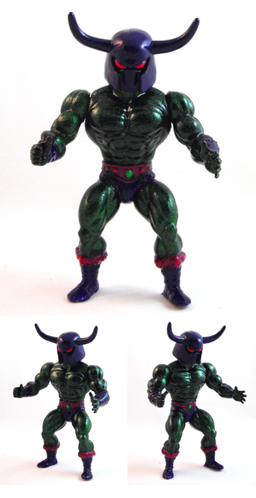 Following the reveal of Orion Axe, Hallogrim, Drowlok and Wardraak over the past month, Galaxxor creator Ben Spencer is proud to present the fifth and final figure in the Cyborg Space Barbarian series, Gammathrall. Consisting of an expertly painted vintage MOTU body, with a horned-helmet sculpted by Ben and produced in resin by Marty “The Godbeast” Hansen, Gammathrall will be making his debut alongside the rest of General Gorgax’s henchmen at Nerd City’s C2E2 booth next week (April 13th). Priced at just $40 each, expect to see Galaxxor’s sworn enemies disappear quick!