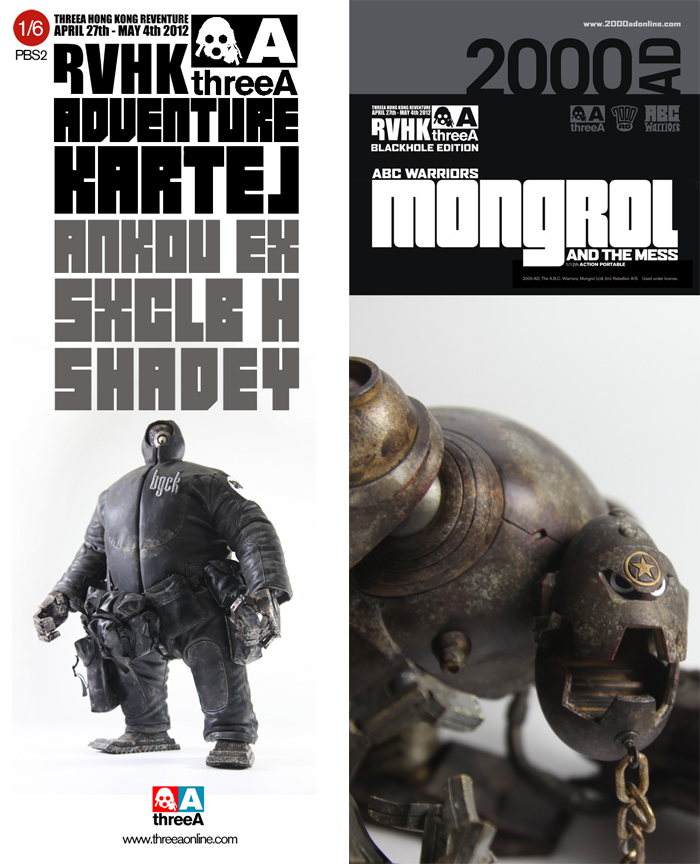 As you can see, there’ll be a couple of unexpected releases alongside the originally publicised 1/12th MONGROL, so be sure to visit the site early to avoid disappointment. Anyone interested in picking up a few (or all!) of the toys on offer will be happy to know that threeA will also be offering up 3 sets, which will include either-