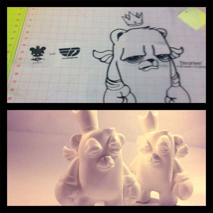 Almost a year in the making, music collective Fly Definition are proud to reveal that their highly anticipated collaboration with Chicago’s JC Rivera will be ready for release later this week. Entitled “Bearlee: A Broken Champ”, the 4″ tall hand cast and painted resin figure has been modelled on the boxer bear character set to feature in Fly Definition’s upcoming fashion project. With no news as of yet with regards to edition size or pricing, be sure to head over to either JC‘s or Fly Def‘s Big Cartel for the drop sometime this Friday (April 20th). Expect more pics soon…