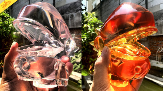After months in the works, the Yellow Dino is proud to reveal that Mini Goji will finally be available for pre-order next month. Produced by My Tummy Toys, the 5″ hand cast clear resin figures will be available in 5 different colours- aqua, blue, red, orange and crystal. With each edition made in super-limited quantities, be sure to keep checking the Yellow Dino and My Tummy Toys blogs for more information in the coming weeks.