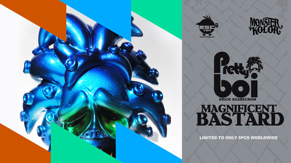 Following the huge success of past collaborations, Erick Scarecrow of ESC Toy once again teams up with Monster Kolor for another super-limited release, the “Magnificent Bastard” Pretty Boi! Coming in the metallic rainbow of colours we saw in the recent Wet Suit Maria release, the hand sprayed resin release has been capped at just 5 pieces worldwide. No news on a release date or pricing, but expect the figure to drop on the ESC Toy store at some point this week…