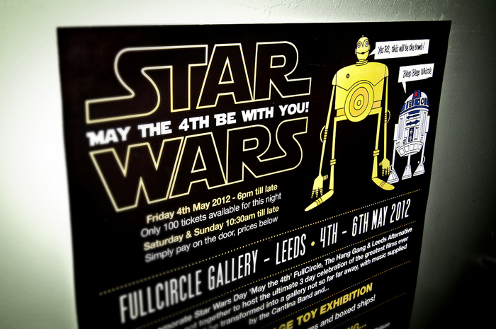 With a number of Star Wars themed celebrations taking place around the world last Friday, we decided to get a piece of the action by heading down to the highly anticipated “May the 4th be with you” group art show at FullCircle, Leeds. Curated by Barry over at the Hang Gang, the massive event played host to over 30 different artists work- both art and custom toys- including the likes of Richard Page, Jon Paul Kaiser, Guy McKinley, Drew Millward, Squink, Bryan Brutherford, and Elmos Empire, most of which were on hand to talk Star Wars, consume art, and of course, drink beer!