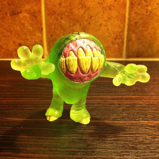 Set for imminent release comes Motorbot’s latest toothy creation, the Creecher! Standing at around 3.5″ tall, the hand cast resin figure will feature Motorbot’s trademark floating brain- an excellent addition that we hope to see more of in his work! No news on how these guys will be released (we’re hoping for the same custom set-up as the Meatster Bunnies), so stay tuned in the coming days for more info…