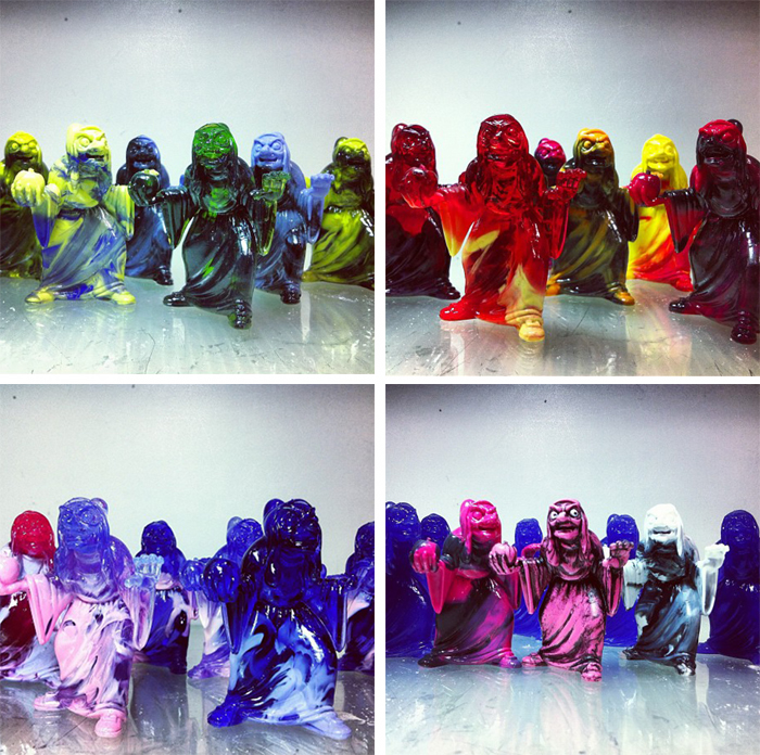 Anyone following David Healey‘s Instagram feed recently would have noticed a certain reoccurring Disney baddie, well today we can reveal to you that the evil witch is part of Healeymade‘s latest collaboration with Lamour Supreme, the Witch Coven! Limited to just 35 beautifully hand cast figures, the bootlegs come in a wide variety of clear, glow in the dark and even marbled resin, with 5 chase figures hand painted by Lamour. Coming bagged and headed (with a design from Lamour), these awesome creations are available now for just $40 each by e-mailing Healeymade directly at david@healeymade.com. From the sounds of it, most are already accounted for, so be sure to get your request in quick!
