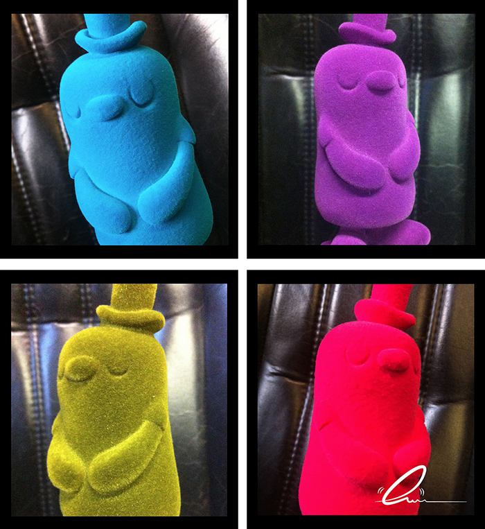As previously mentioned a couple of days back (read more here), Richard Page of UME Toys has been hard at work preparing a special edition of his Martin Longbottom release… which we can now reveal as the beautiful flocked FuzzyMartins! Coming in either red, yellow, purple or blue one-off designs, the figures should be available directly through umetoys@googlemail.com soon. We can’t wait to see these guys in person, Martin’s minimal design is the perfect fit for the effect… and with Rich learning the process himself, we can hopefully expect to see a lot more in the future! No news on pricing as of yet, but we’re guessing these stunning 4″ figures will be retailing upwards of £65 shipped…