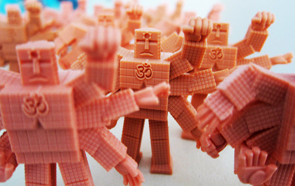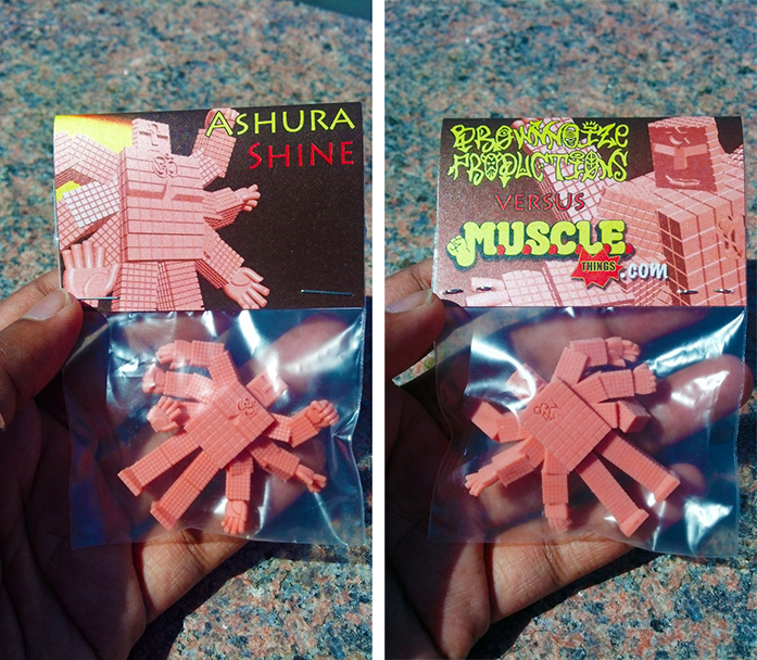 As we continue to delve into the vast world of M.U.S.C.L.E and Kinnikuman in preparation for next month’s ‘Ed Skworm vs. Min-E-Face release (find out more here), we’ve decided to bring to you another awesome custom piece that’s been doing the rounds recently… the AshuraShine from Brownnoize Productions. Taking 2 of the most well known characters in the M.U.S.C.L.E universe, the 6 armed Ashuraman and Sunshine robot, Brownnoize recreated the figure a while back in CAD, with a limited clear run coming 3D printed by the guys over at Shapeways.