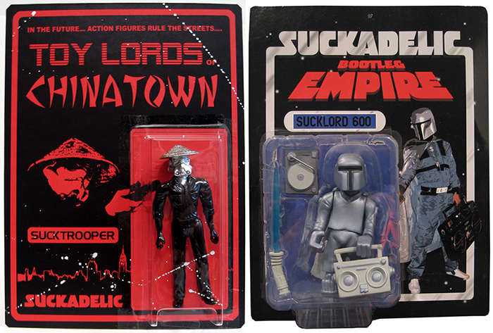 Following the massive success of the “Toy Lords of Chinatown” episode 3 screening last Saturday, the Sucklord has finally put the featured figures up on the newly opened Super Sucklord store. Including the classic style Sucktrooper bootleg that we featured last week, the latest version of the SUCKLORD 600 is also available in an edition of just 125 pieces worldwide. Coming in a silver cast vinyl with clear blue lightsaber, the figure has been cooling in a warehouse since 200, so we’re ecstatic that he’s finally seeing the light of day (mainly because we missed him the first time around!). Priced at just $75 and $65 respectively, the figures, along with a whole host of other Suckadelic merchandise can be purchased right here…