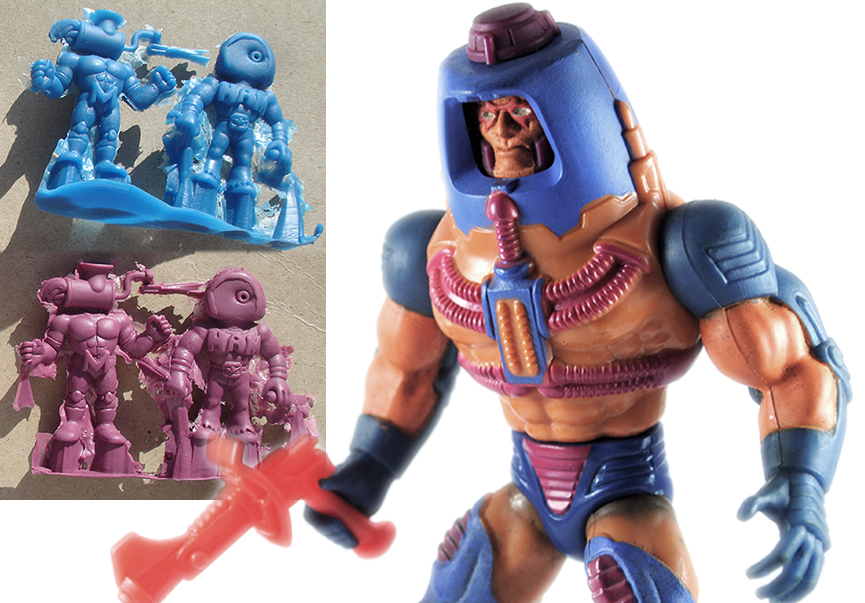 As mentioned in our recent exposé of their awesome work, the mighty Eric Nilla and Tyler from Nama-Niku have agreed to work on a number of exclusives for our store… so it comes with great pleasure today to reveal to you the very first test pulls! Due to feature Eric’s SD Splatterhouse Rick, alongside Tyler’s Chibi Meatgrinder, standard Meatgrinder, and the Super Rare M.U.S.C.L.E Can (the pictured Half Baked Ham has not been confirmed), the 4 figures will be cast in an authentic keshi style rubber, coming in both a Man-E-Faces themed blue and super-limited purple colourway. As you can see by the comparison below, Eric’s already got the tints spot on… so expect to see these in the MAN-E-TOYS store sooner rather than later! In the mean time, we’ll be covering each of the figures in depth over the next few weeks (the Super Rare M.U.S.C.L.E Can has already featured here), so be sure to stay tuned!