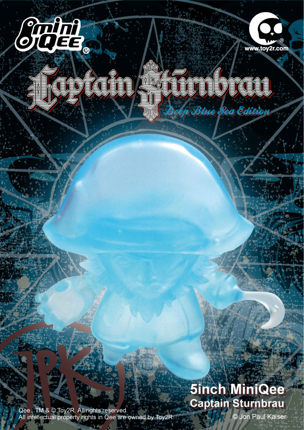 It’s been a while since we’ve heard any news with regards to more Captain Sturnbrau colourways, so it came with great pleasure yesterday to find that JPK and Toy2R are gearing up for the spooky “Deep Blue Sea” edition’s imminent release! Coming cast in a clear aqua blue vinyl, the 5″ Mini Qee should be seeing the light of day sometime in June. As with previous Sturnbrau releases, expect to find “Deep Blue Sea” in limited quantities at your local designer toy emporium for around $40 (£28). Expect more news on exact dates and edition size soon…